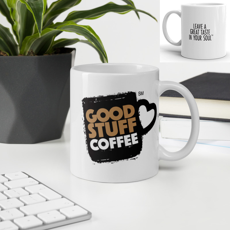 Life’s just a little bit better when you’re sporting the Good Stuff. Get the official Good Stuff Coffee logo on a sturdy 11-oz or 15-oz ceramic Coffee Mug. Glossy White. Dishwasher and microwave safe.